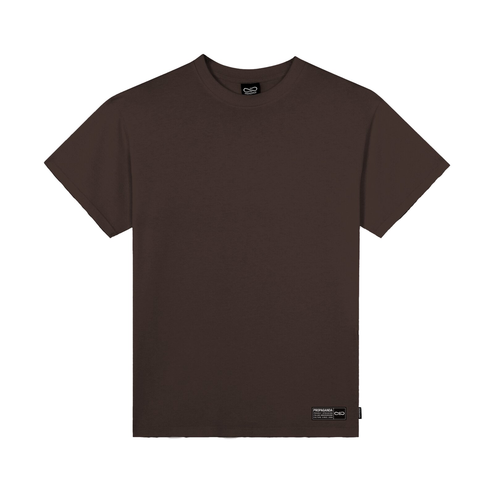 T-shirt manica corta in Cotone. Woven label su fronte. Screen print on back. Custom flag label at left hip. 100% Cotton. Made in Italy.